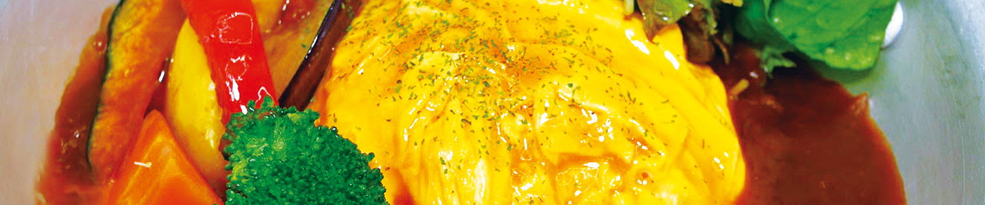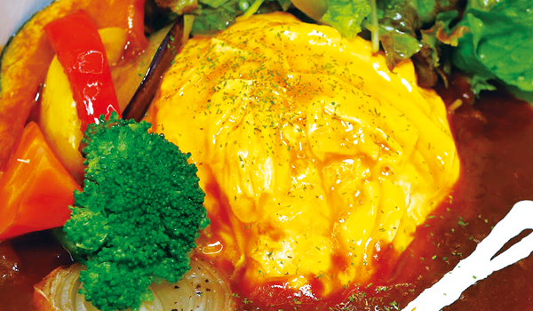 グリルした久住野菜と自家製のデミグラスソースをたっぷりのふわふわ卵で包みました。